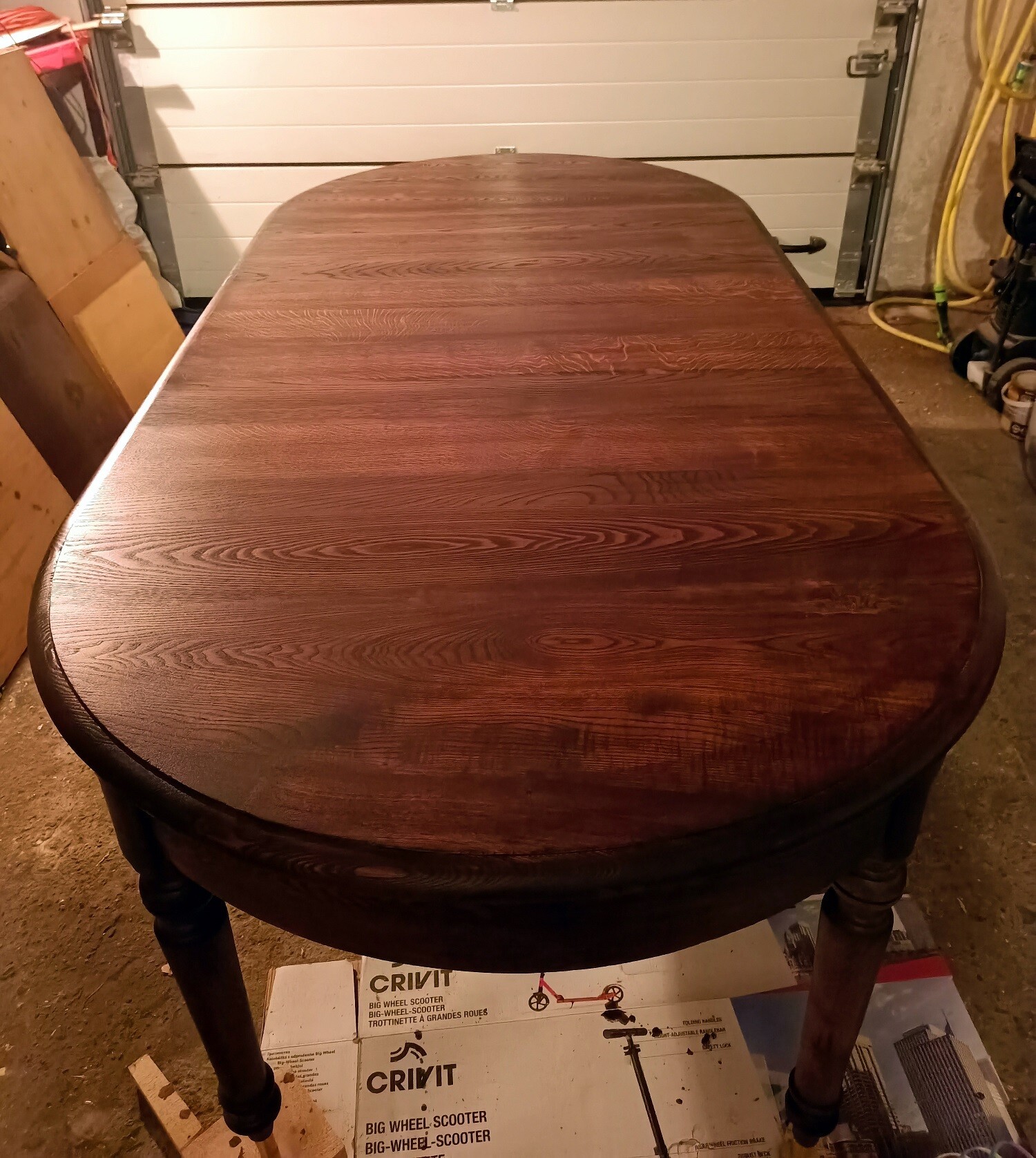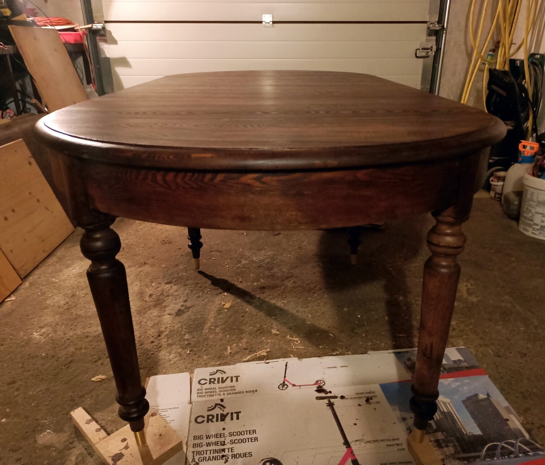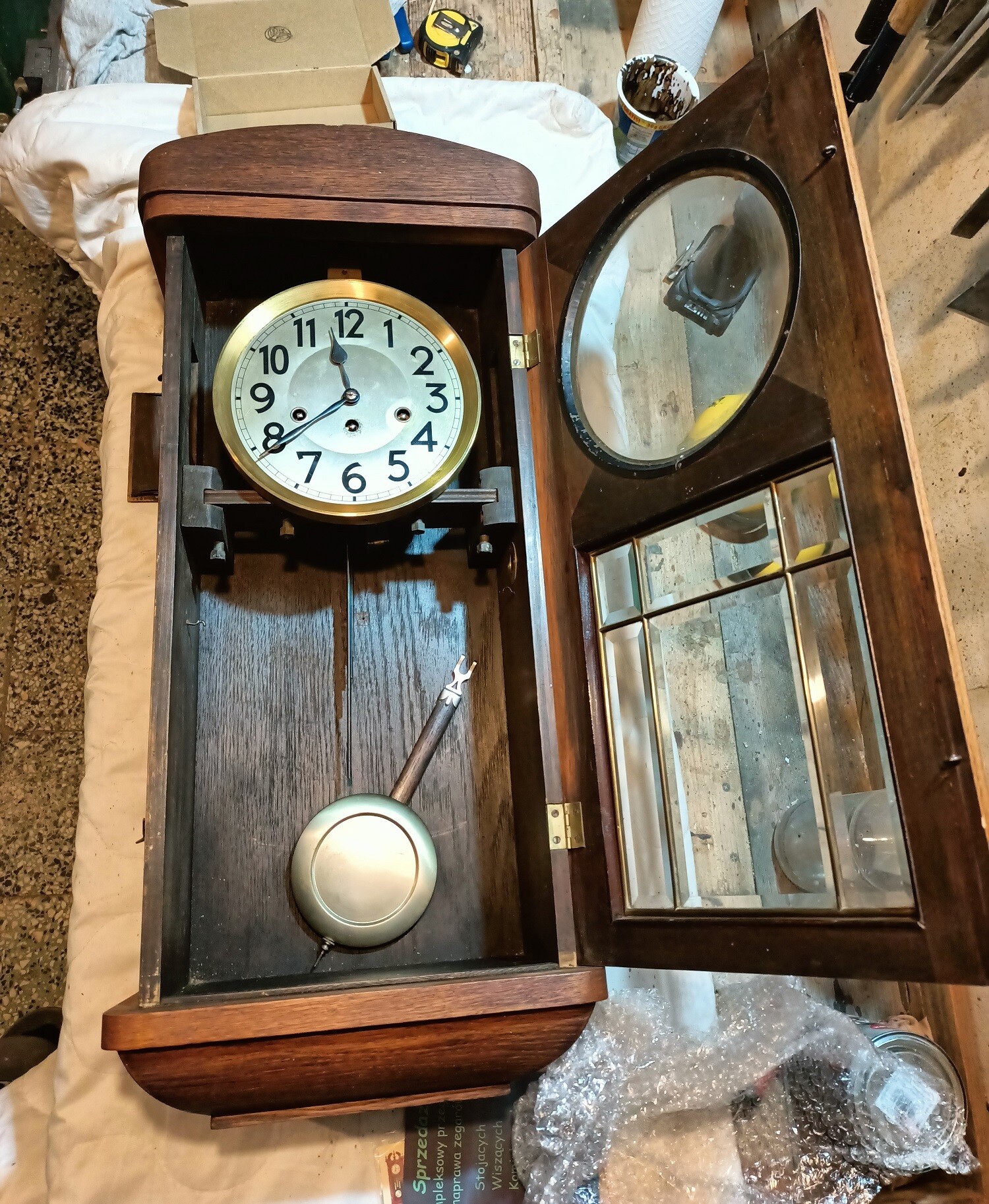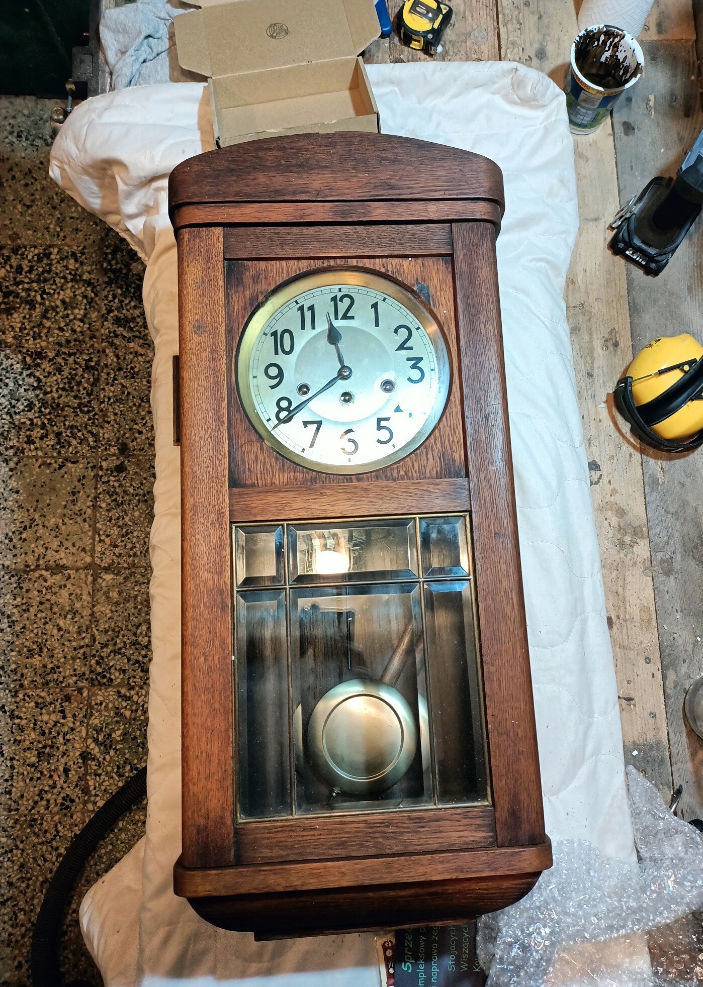 Waga z nabitą datą 1879 roku, znajdowała się u klienta od pokoleń. Nogi musiały być wymienione, rozeschnięta skrzynia posklejana oraz wzmocniona. Żelazne elementy zostały oczyszczone, odrdzewione oraz pomalowane na nowo. Wg życzenia klienta, waga dostała nową powłokę w kolorze odpowiadającym oryginałowi.