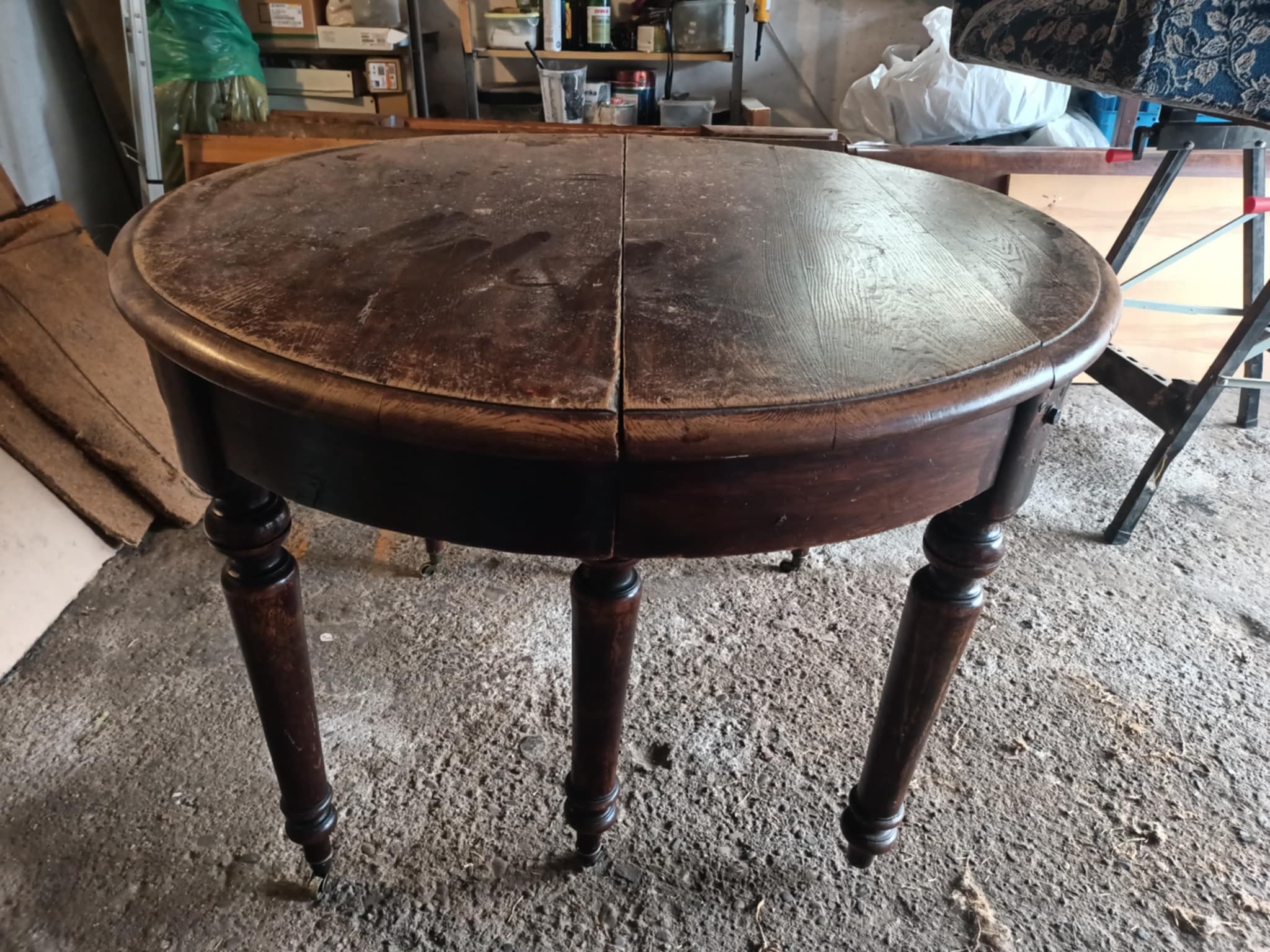 Przedmiotem renowacji był dębowy kredens z okresu przedwojennego. Ze względu na ingerencje wynikające z wcześniejszych, amatorskich prób odnowienia, mebel wymagał gruntownego oczyszczenia oraz usunięcia warstw starej farby pokrywającej uszkodzenia. W ramach prac renowacyjnych dokonano uzupełnienia ubytków, naprawy konstrukcyjnych elementów oraz aplikacji nowego lakieru. Kolor wykończenia został dostosowany do oczekiwań klienta.