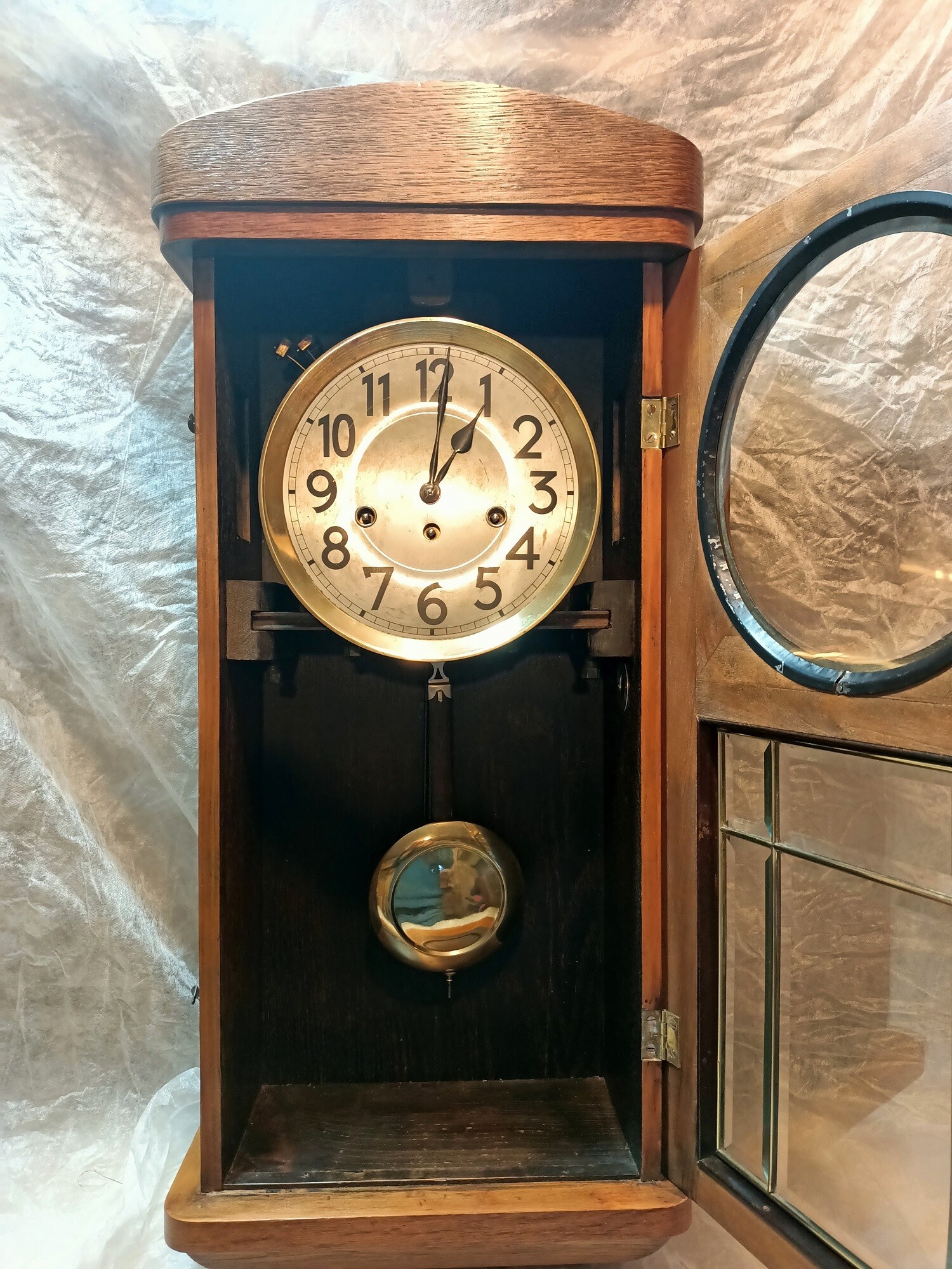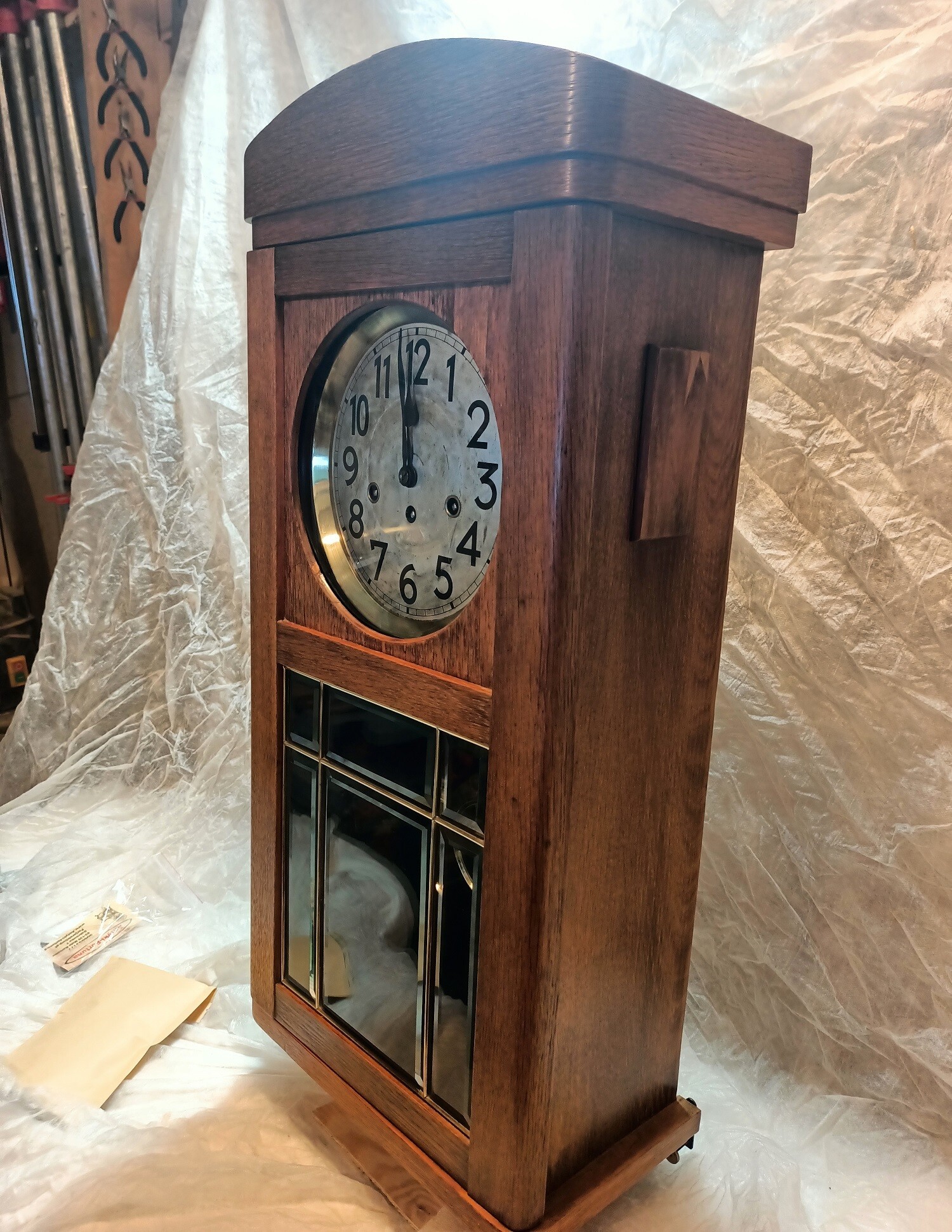 Prezentowana na zdjęciach jedna z dwóch identycznych szaf została oczyszczona z białej farby. Prace między innymi wymagały wymiany zniszczonego forniru, naprawy ubytków, wymiany zawiasów i innych elementów mechanicznych. Szafy zostały zabejcowane, a jako zabezpieczenie powierzchni użyto naturalnego wosku.